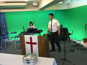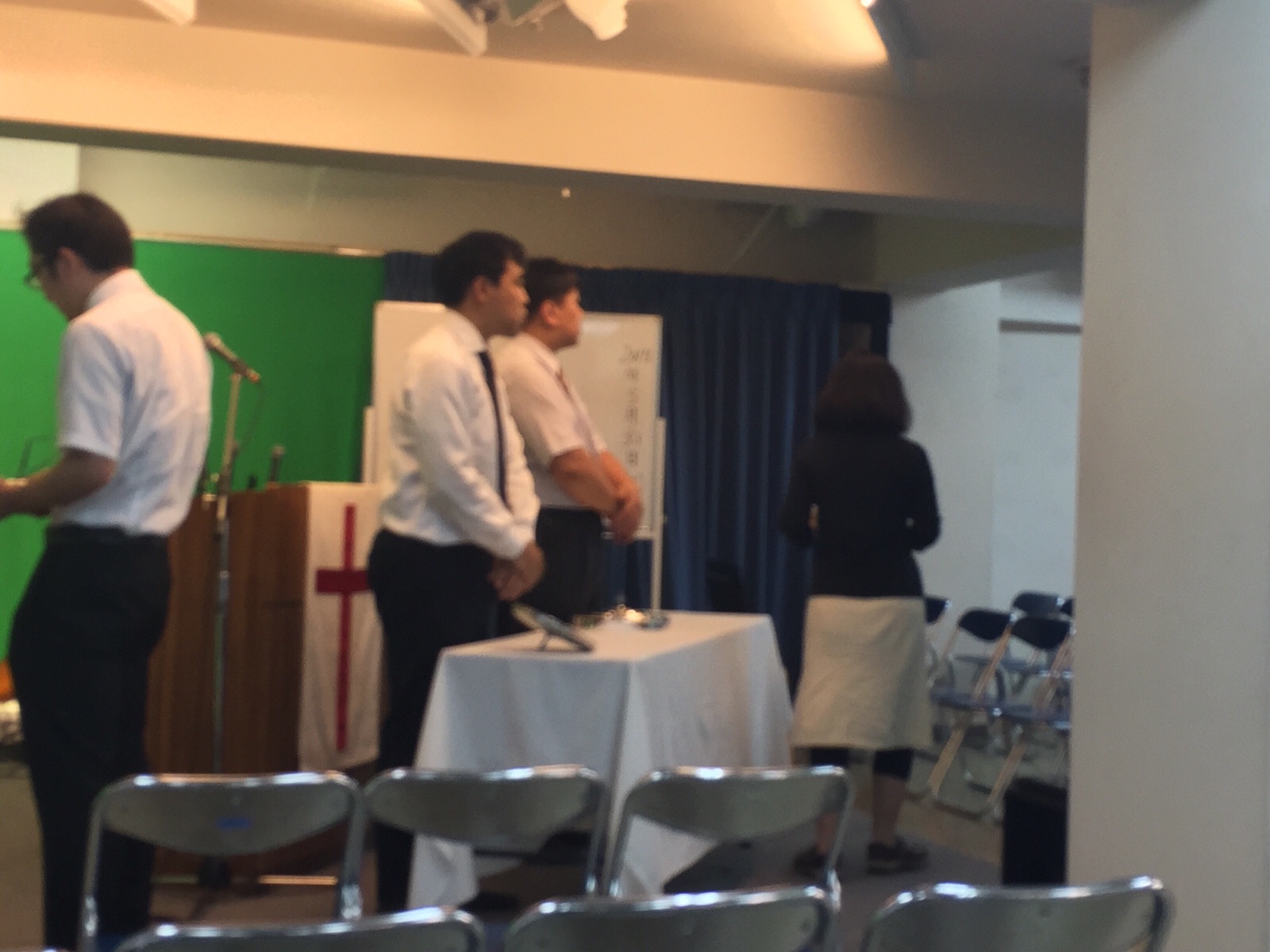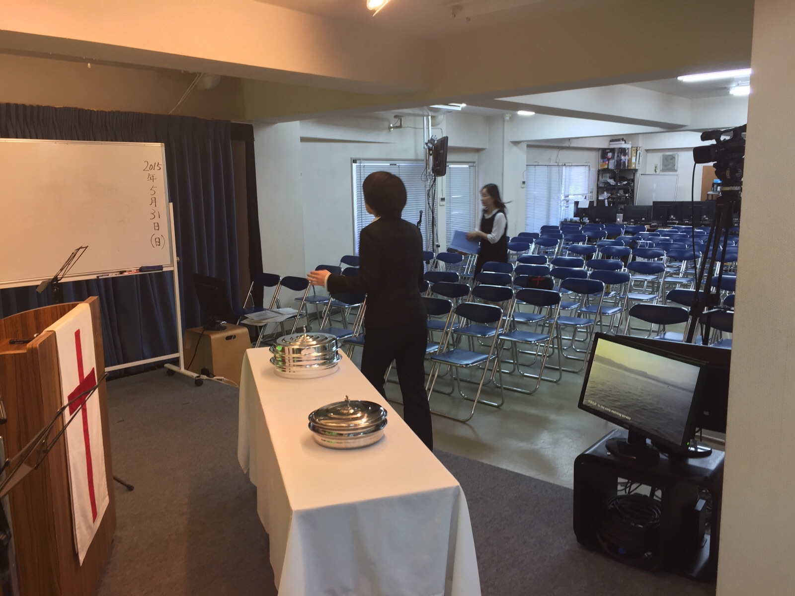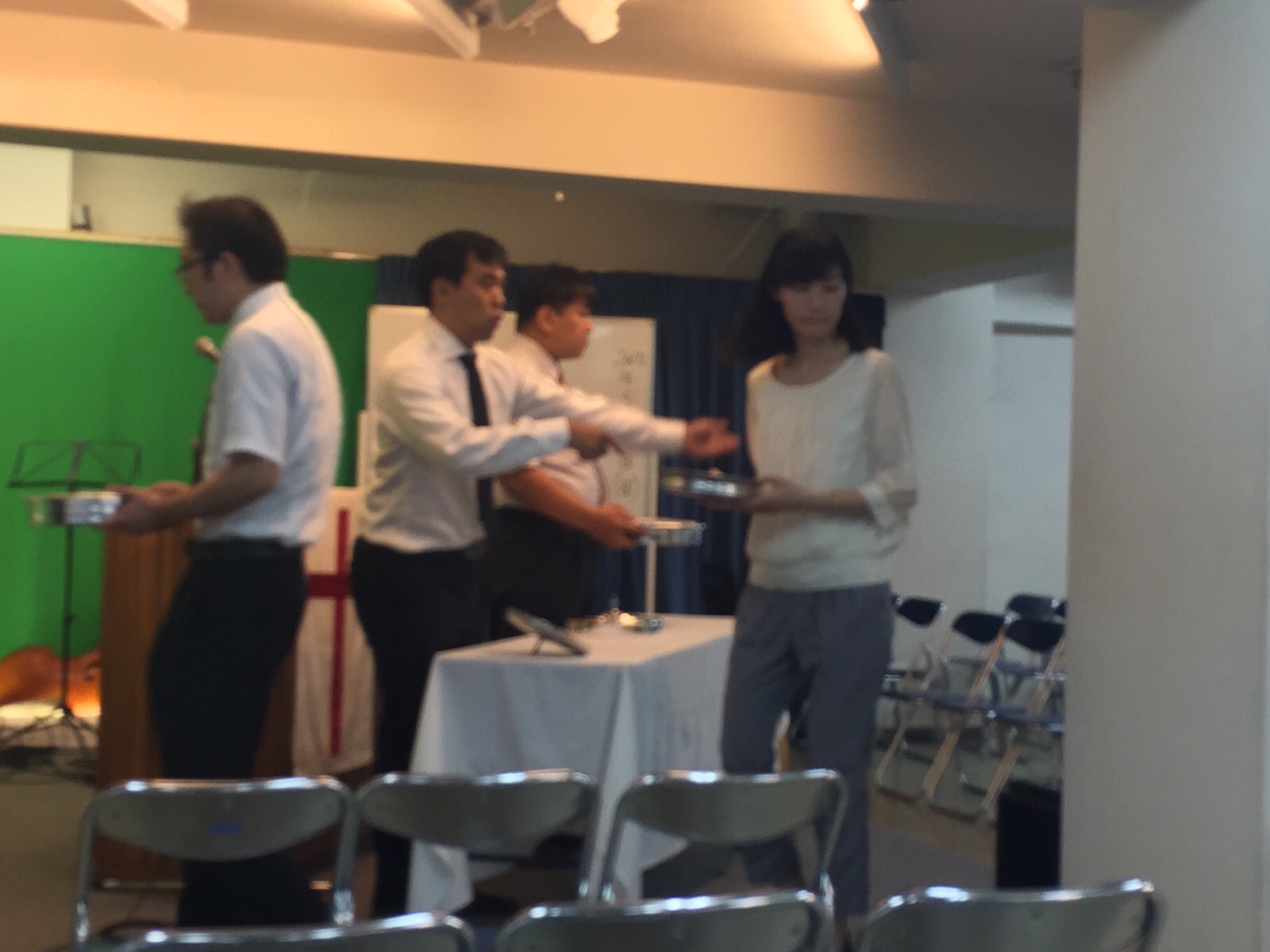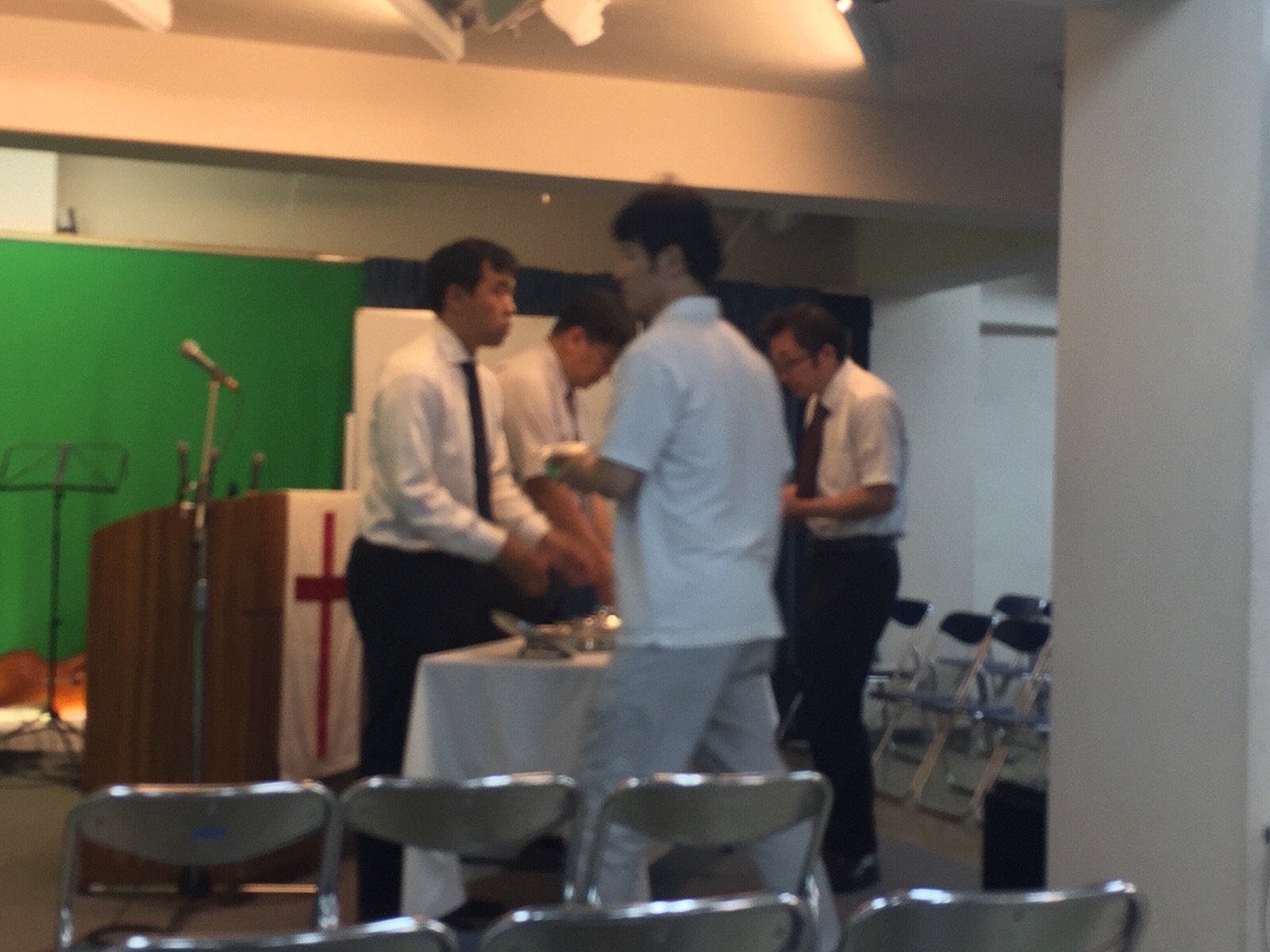 早朝礼拝の聖餐式は牧師と伝道師の2人で膳を渡すようになりました。