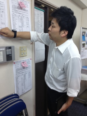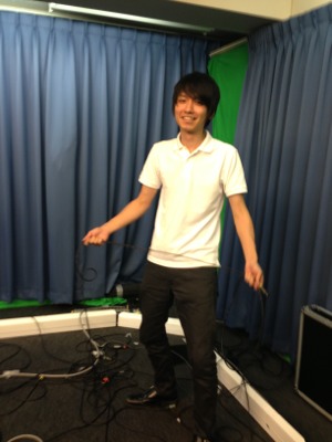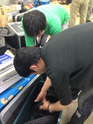 出西牧師と樋口くんが、ケーブルの確認をしています。