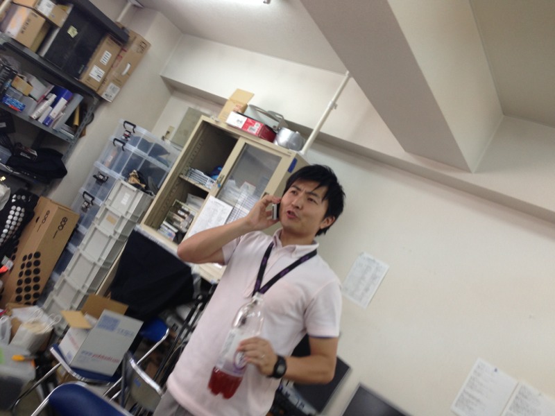 いらっしゃいました! 白馬関係で忙しそうに動きまわっていらっしゃいますモーセ出西牧師。動いているうちに体も頭の中も熱くなり、ぐびーっと大きなペットボトルの飲み物を飲みクールダウンを。