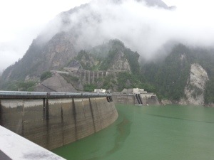 雨でしたが、私たち二人だけが黒部ダムに来ています。 私たちのバスの運転手は十代に洗礼を受けたクリスチャンだということがわかりました。