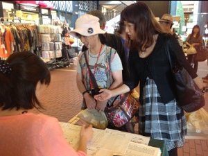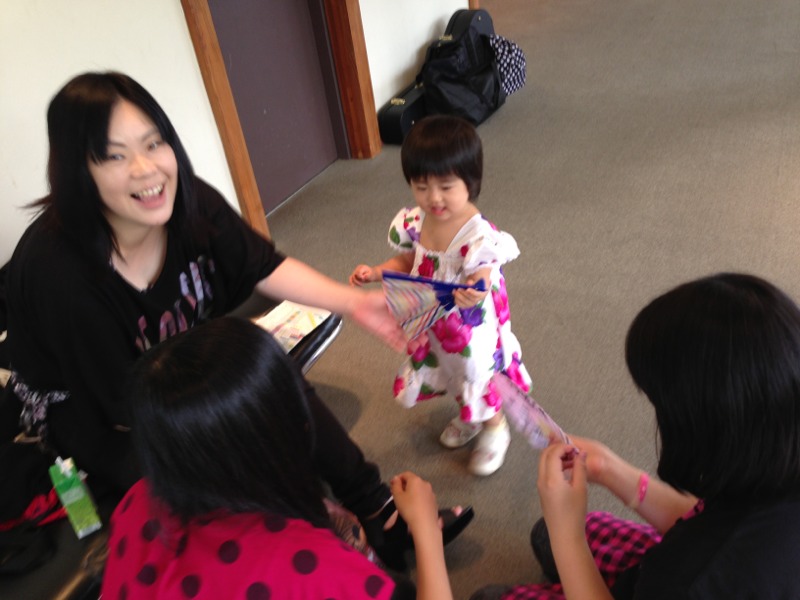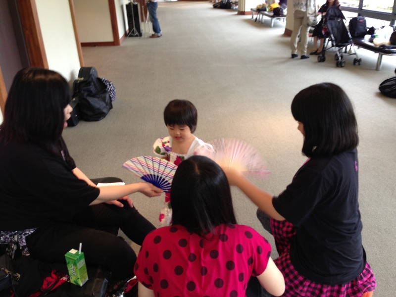 エシュルンちゃん、扇子であおいでもらい涼んでいます!節電中で冷房がきいていないのです。