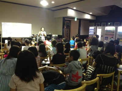 小学生聖会メッセージ 「みなさん!こんにちは〜」 Jさんの迫力に、圧倒されて聞き入っている子どもたち。