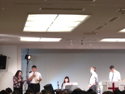 司会の出西牧師!楽しい司会で笑いを誘っています。