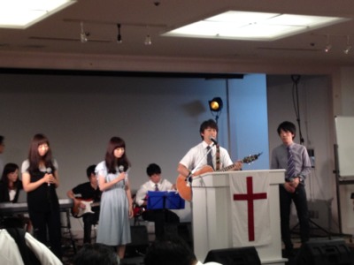 前半賛美はヨセフ三本松牧師チーム!写真は練習中のですが。