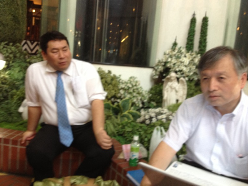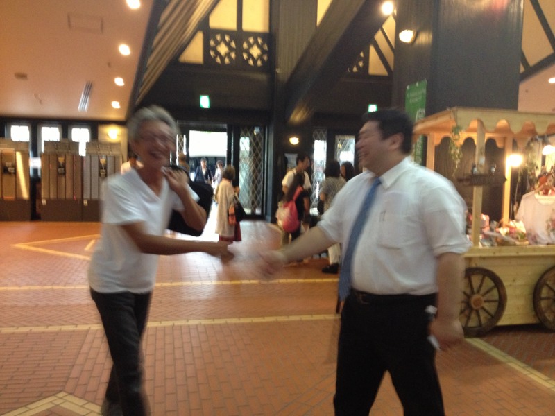 久しぶりの再会にかたく挨拶をかわすお二人!ペテロ真境名牧師の携帯が小さいと突っ込む山下牧師!^ ^