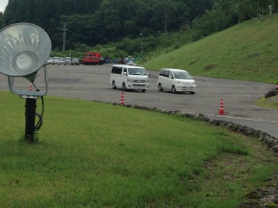 あずさ組はただいまホテルに到着です。設営車もすでに来ていました。