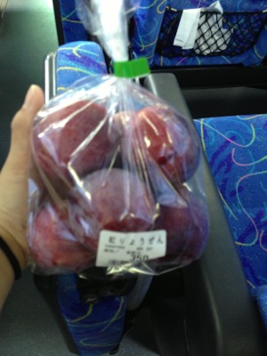 初めてのサービスエリアで紅りょうぜんの果物を買いました(^ν^)