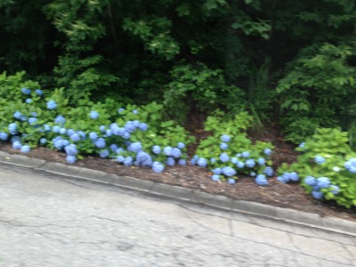 バスは木立のなかを進んでいます。紫陽花が綺麗です。