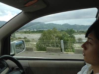川沿いを走ってます。 川を見ては、はじめ君が川で遊びたい、花火をしたいとしきりに申しております。