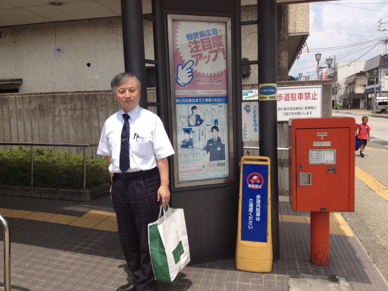 ペテロ窪田牧師ご家族にお会いしました。外国の方に白馬らしい切手を求めて来られたそうです。
