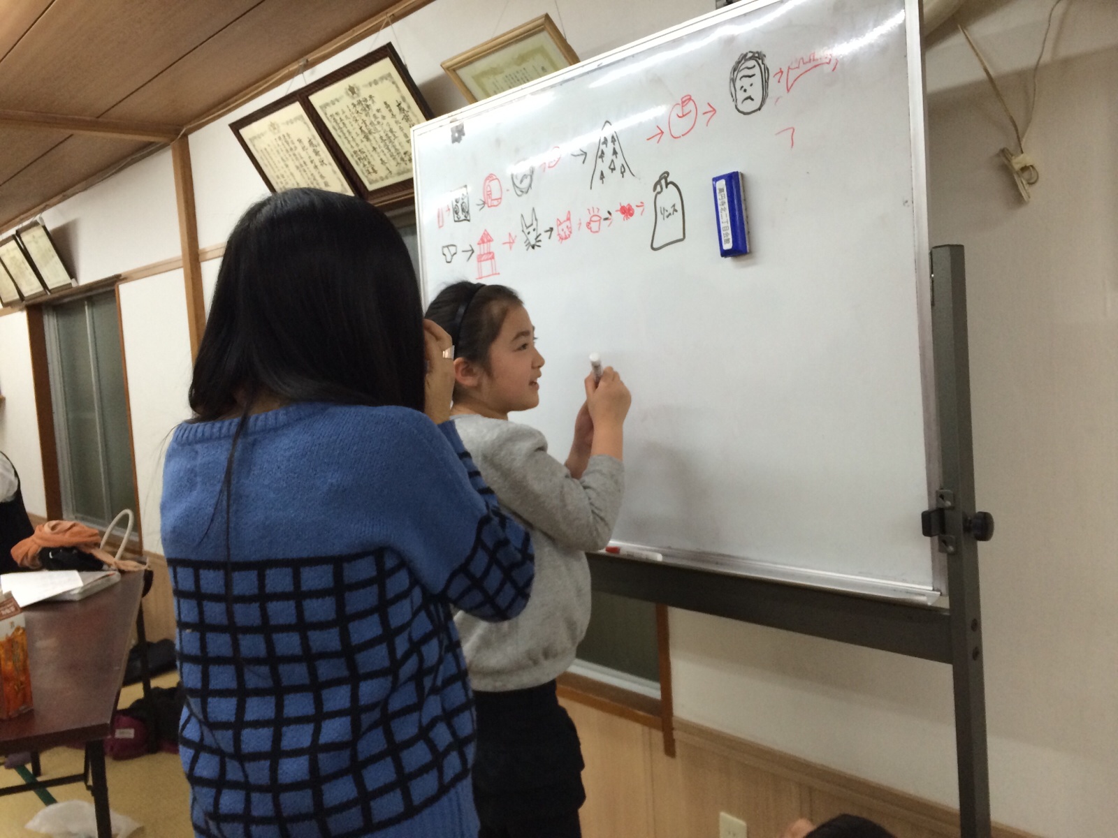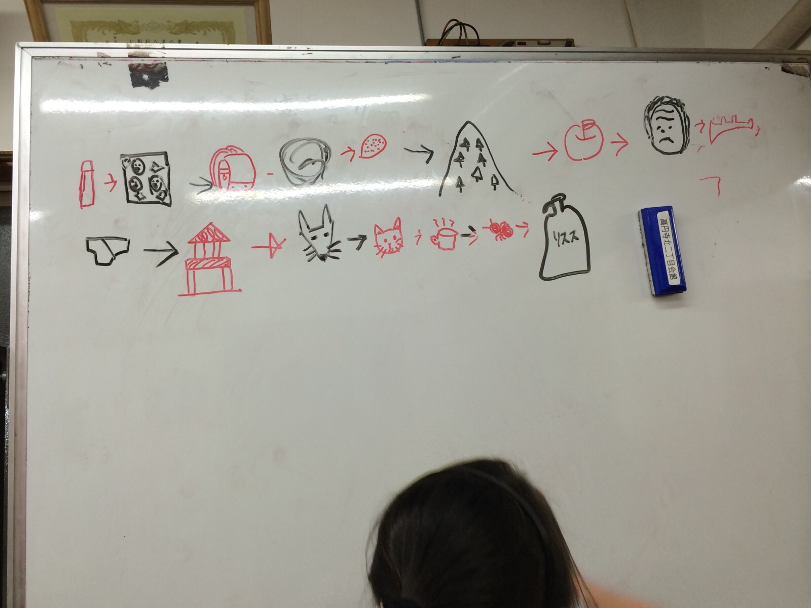 サラちゃんが遊んでくれてます。 絵かきしりとり‥ わかりますか(・・?)