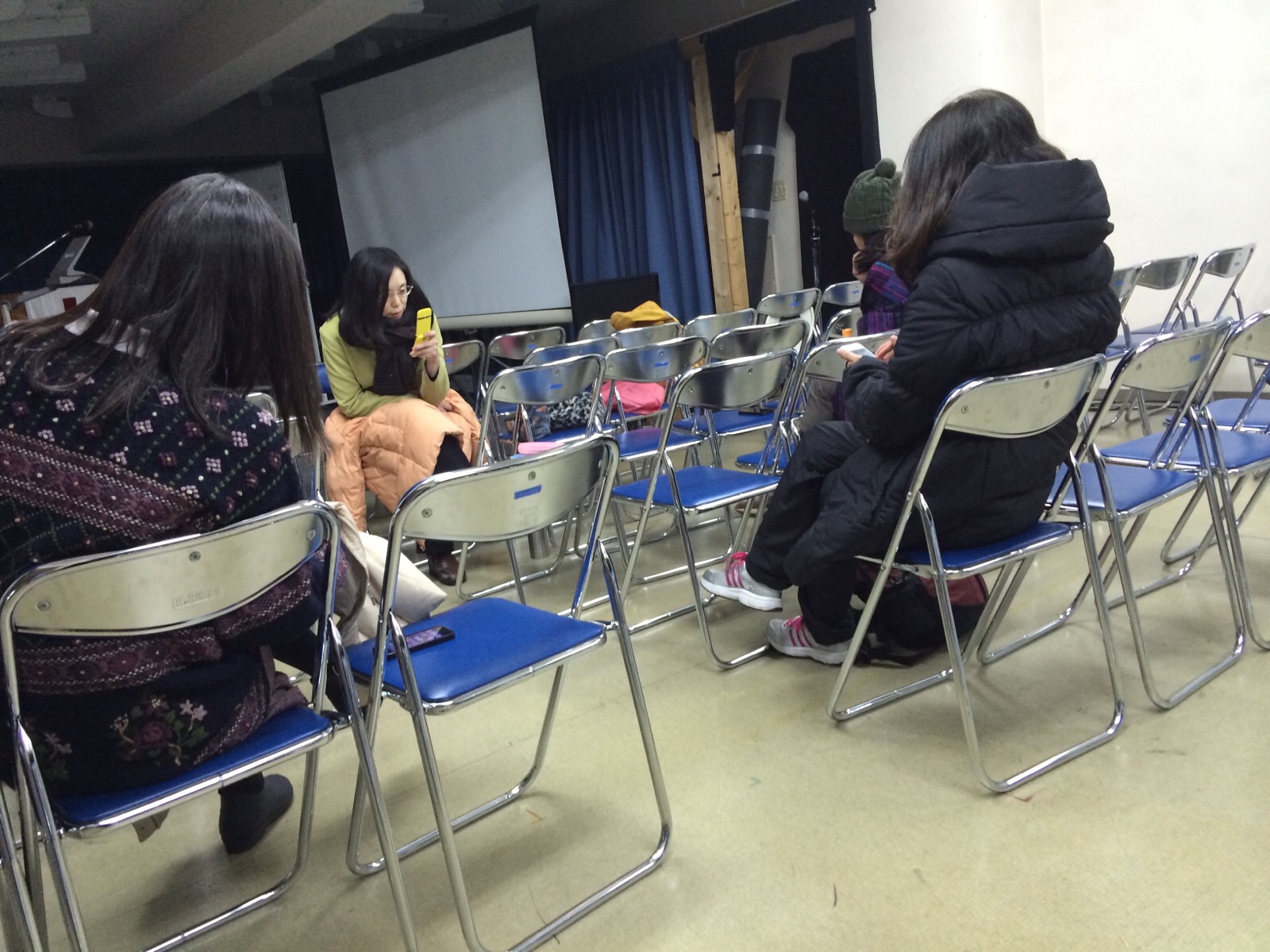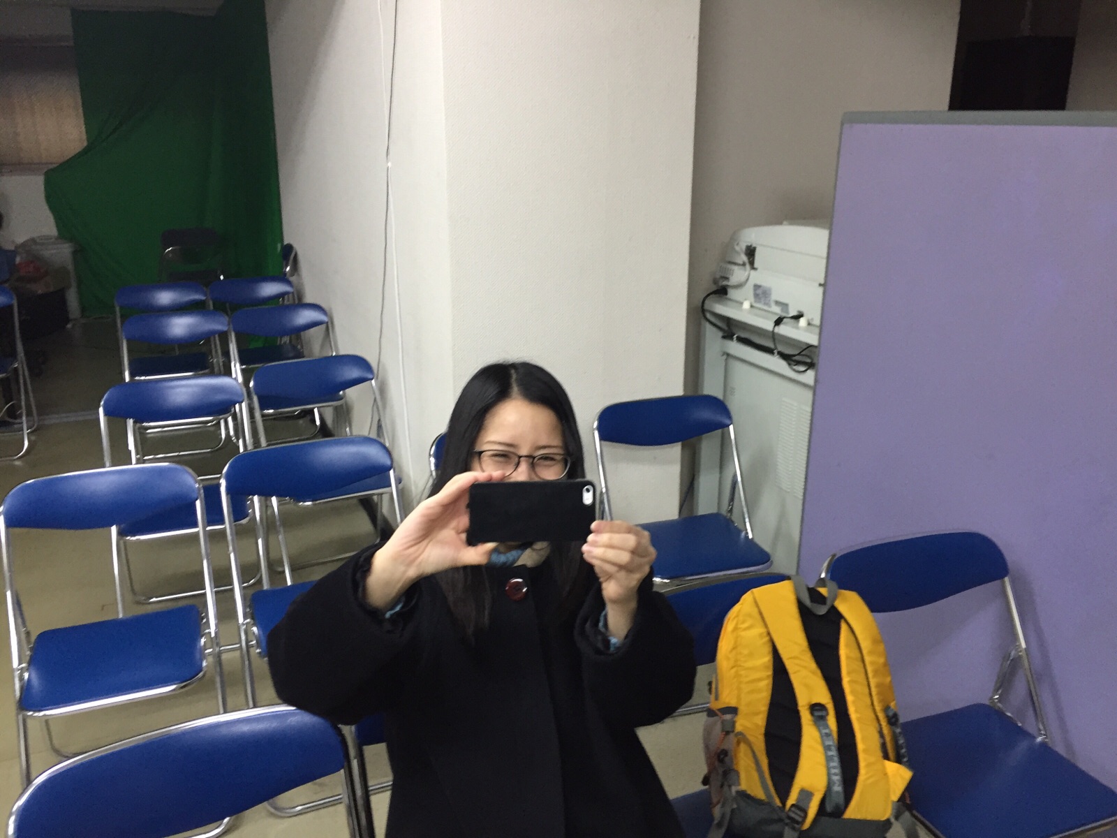 写真を撮るタイミングを外しました。 後ろ姿の真境名さんと、顔隠れた益川さんの写真。 ミカエル