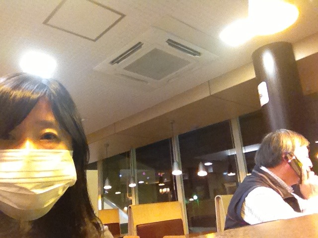 寒い中、雲の間にある虹出版の事務所から移動してきました香ちゃん。これから徹夜祈祷会に! エステルYS