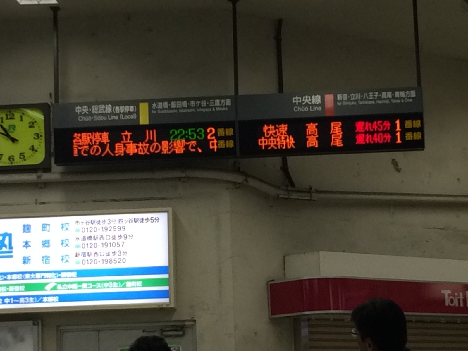 ほんとだー。中央快速、遅れ45分だそうです。 ミカエル