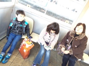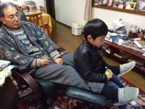 今日東京に帰ります。 最後にじいじのそばに寄り添う息子です。