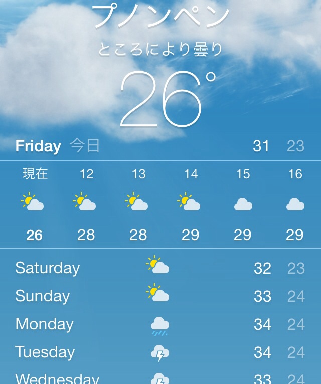 今日からブログ参加、よろしくお願いします。こちらは26℃、いつもより涼しいです。 カンボジア Imai