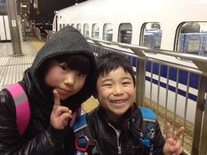 出発数秒前に自由席車両に乗った2人! 新幹線内では爆睡していたようです。