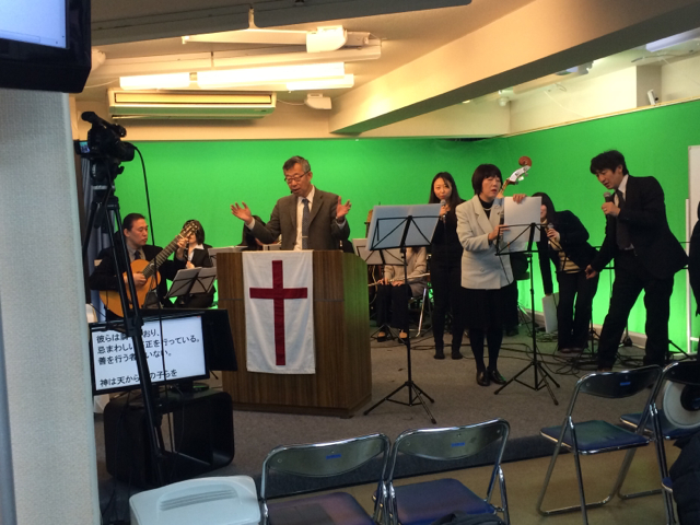東京アンテオケ教会の牧師である秋元さんが導かれる賛美の時です。
