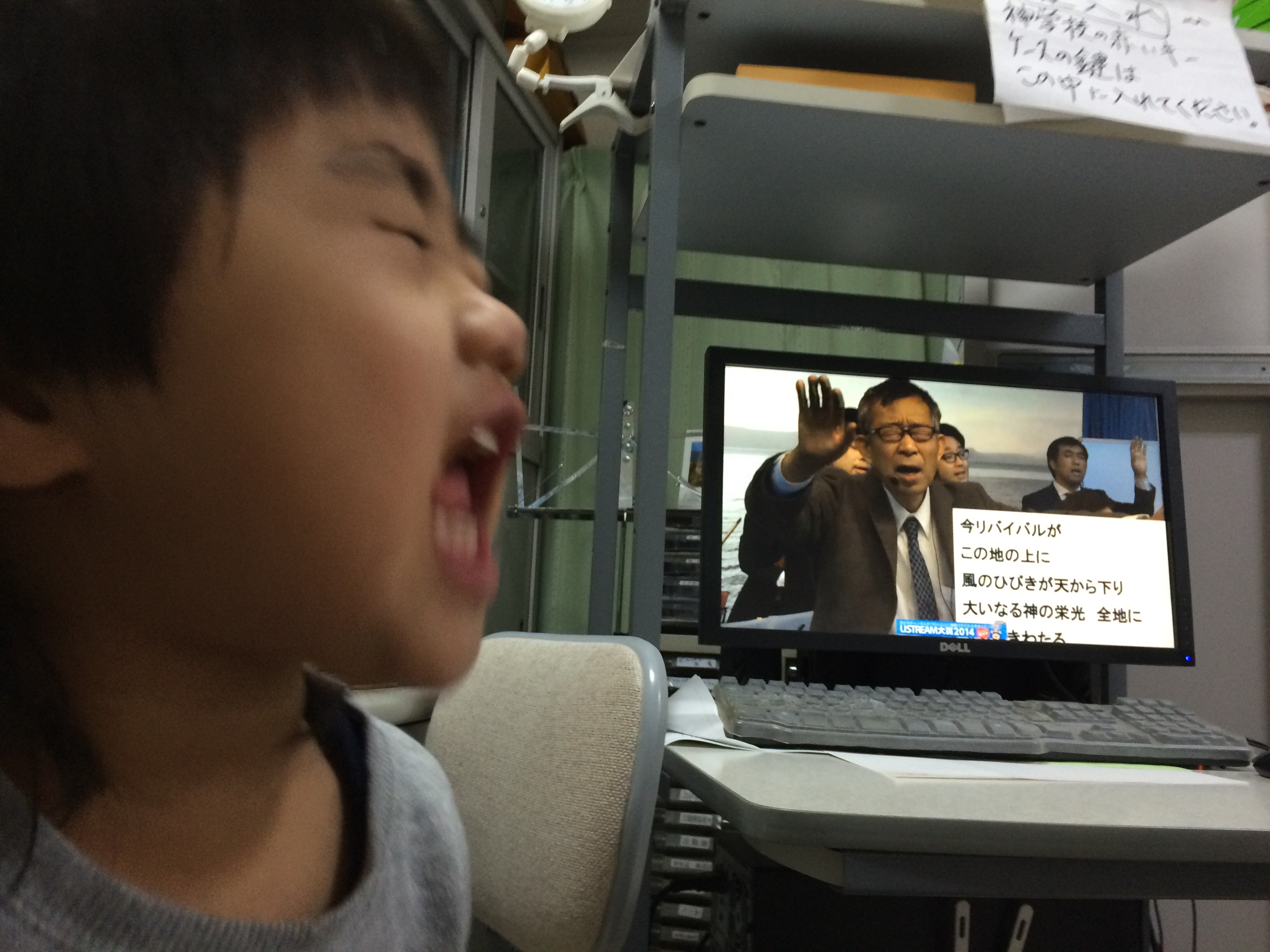 賛美の時。 風のひびきを熱唱中。