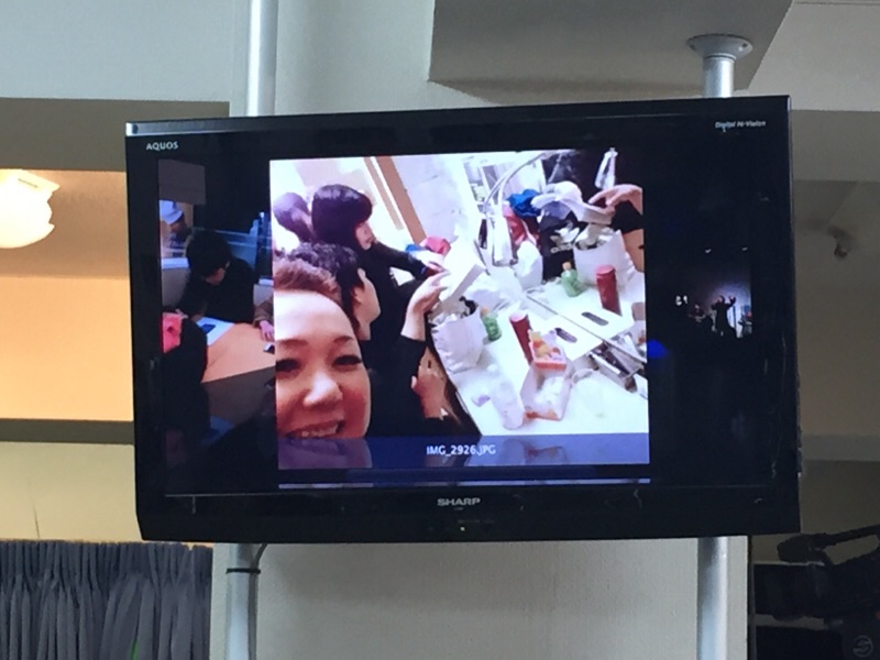 それから、向こうで聴いてた女子学生が拍手してたので、ダビデ君がチラシ持っていきました! Gifts