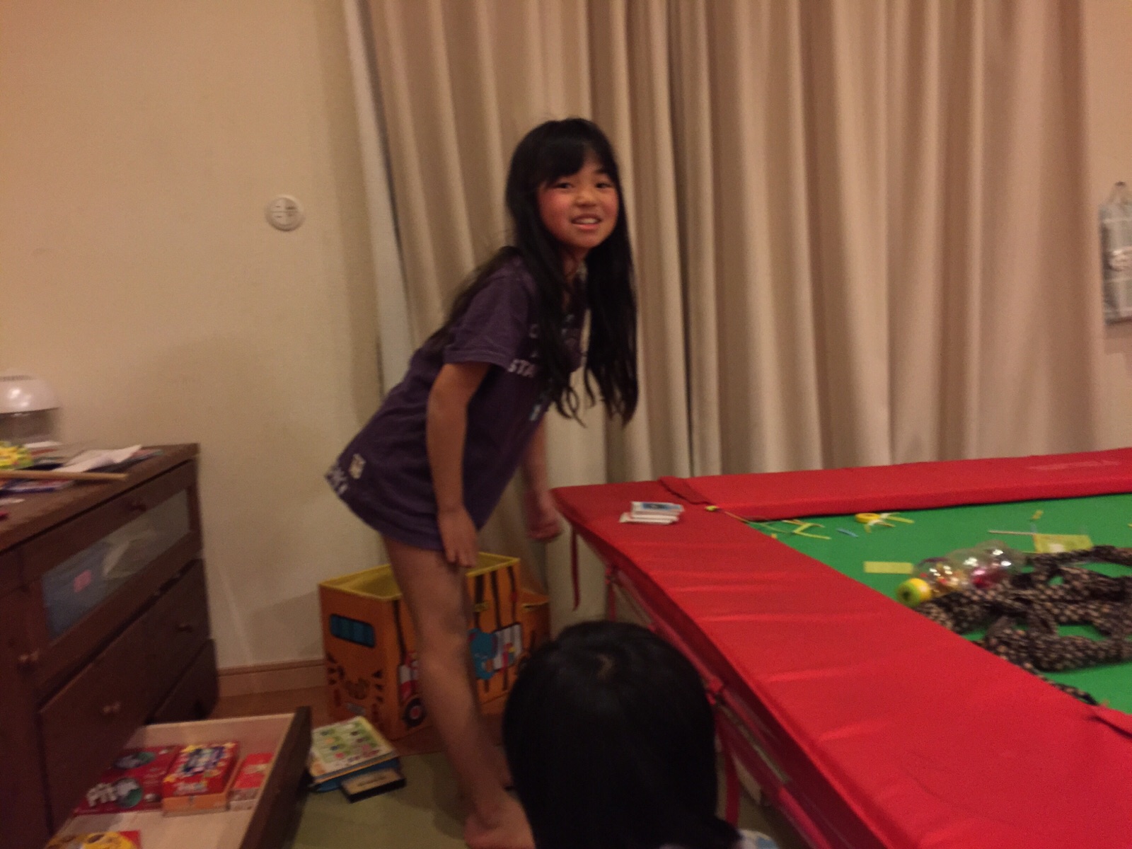 夕食後、いつになく外をウロウロしているCT(写真右)。 どうしたの?と聞いてみると、部屋の中が暑いから涼んでるんだそうです・・・。 左は、夕食後、洗濯を終えたNA。 2人とも、7年生(中学1年)です。