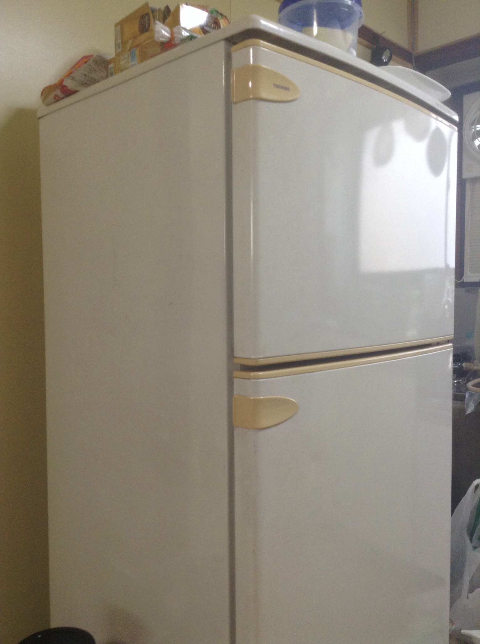 この冷蔵庫は大家さんがくださいました。他にもおせちをくださったり、お世話になっています。こころごすぺるに、来てくださるといいな。ワタ