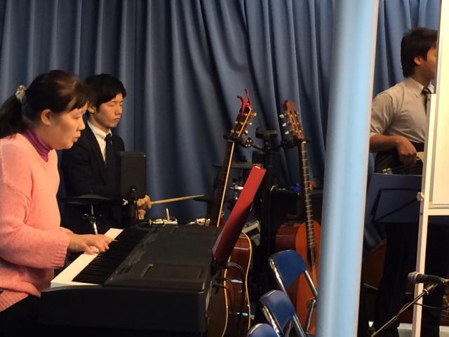 第二礼拝がスタートしました! 賛美を導くのは笠原さん。