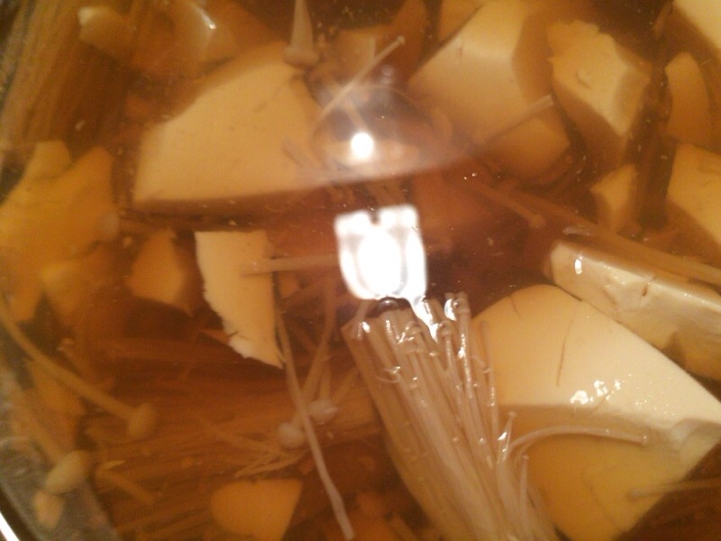 夕飯のお吸い物できたそうです。エノキとお豆腐の。 (^O^)/ ハルミ