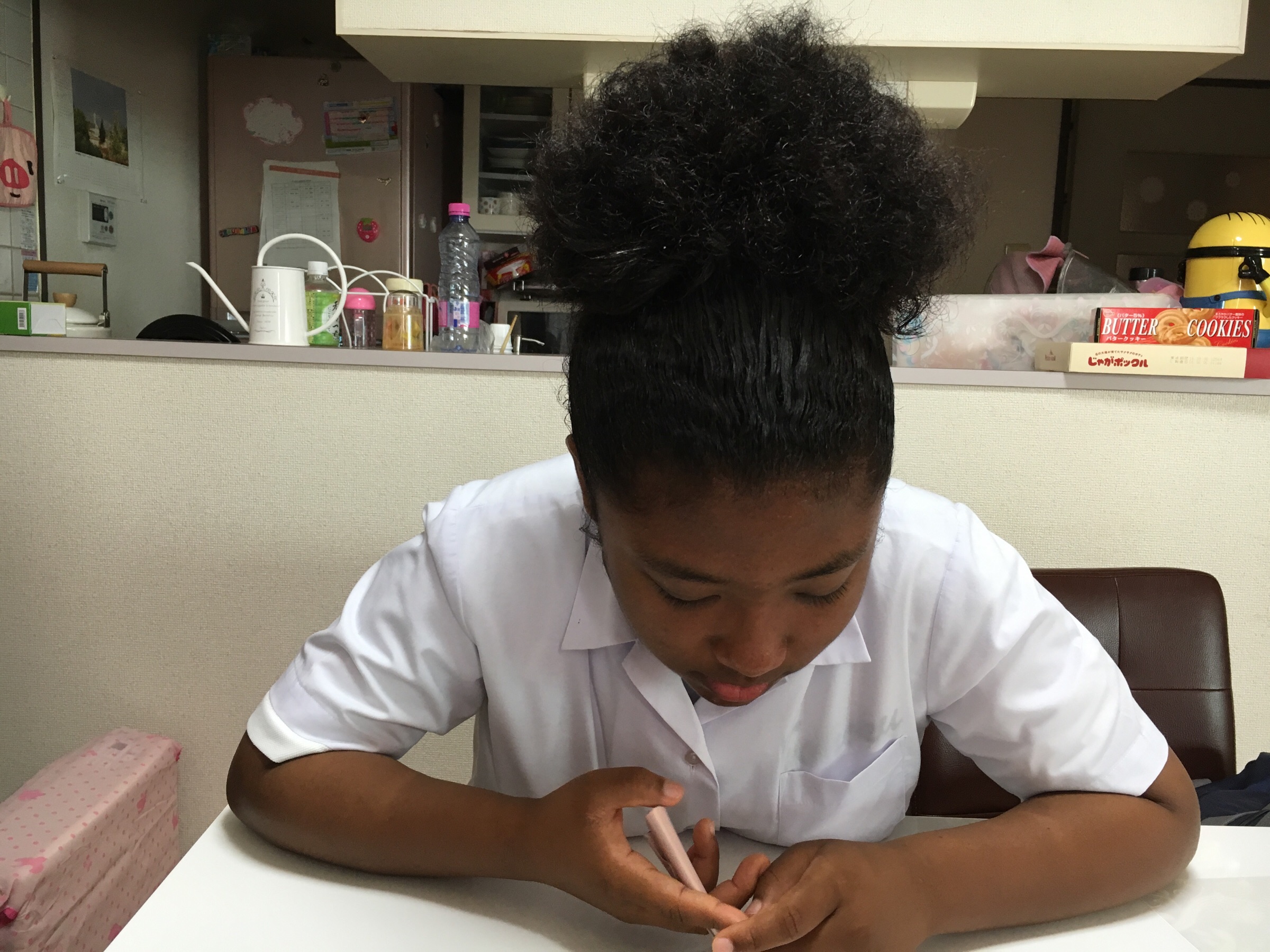 娘の書いた習字見てたら名前が間違ってるやん!? かねざきの〝き〝が無いよ〜!大丈夫か〜(>_<) 祈り