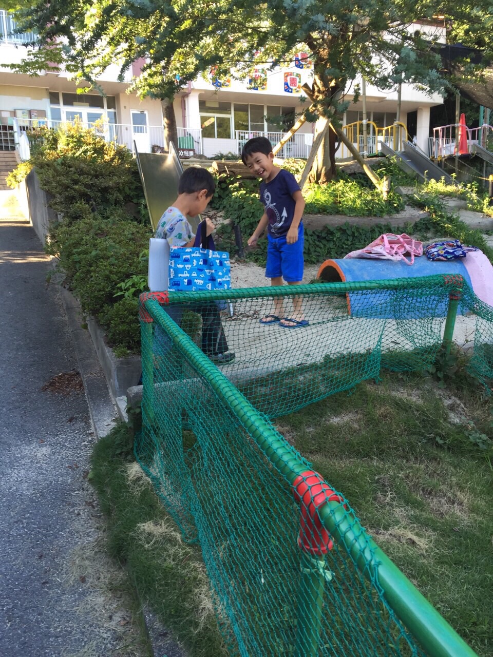 朝学校行く前にゴミ出しのお手伝いです♪ 今日は暑いなぁ( ˙◊˙ ) Believe
