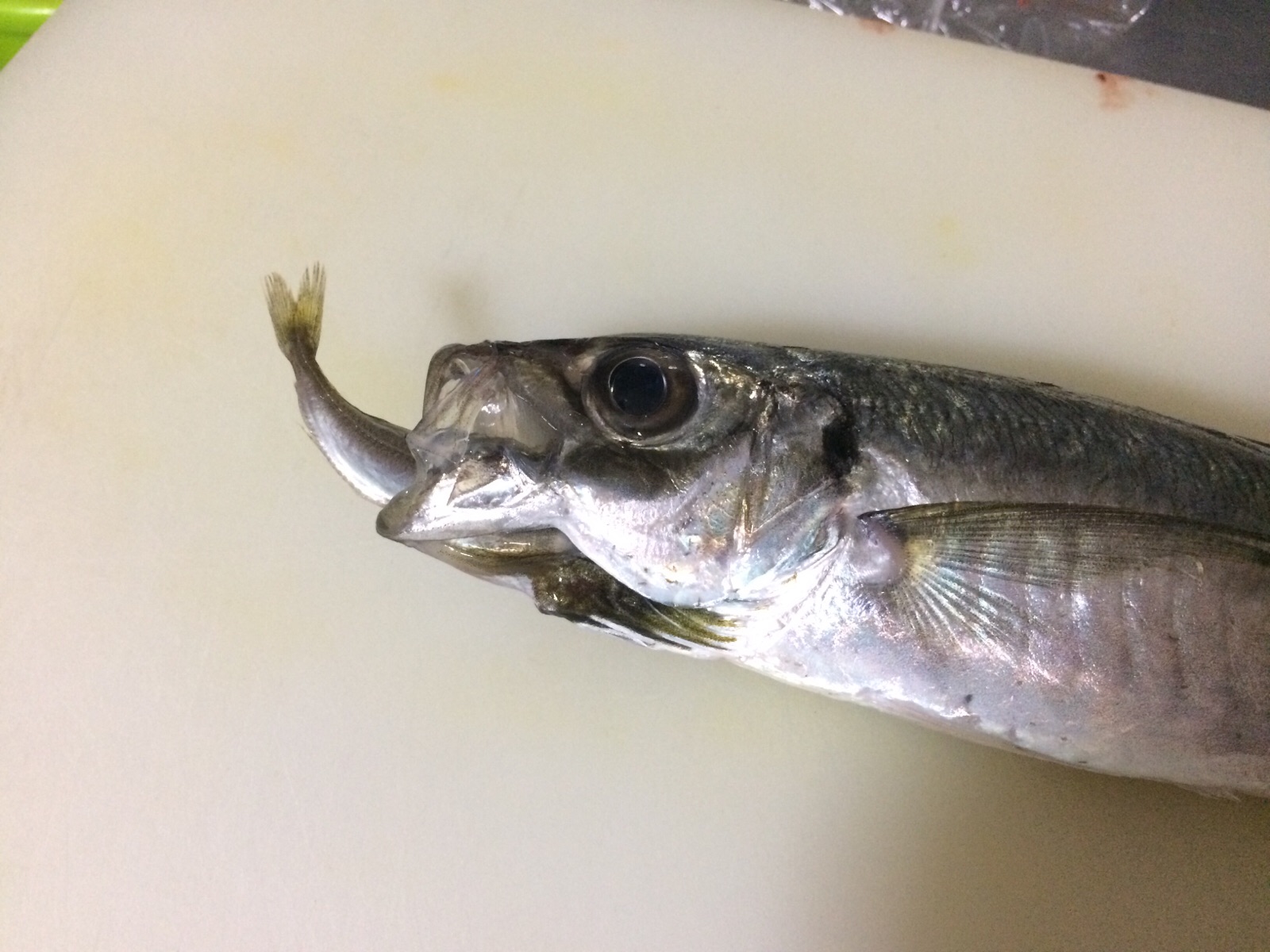 アジの口の中から、