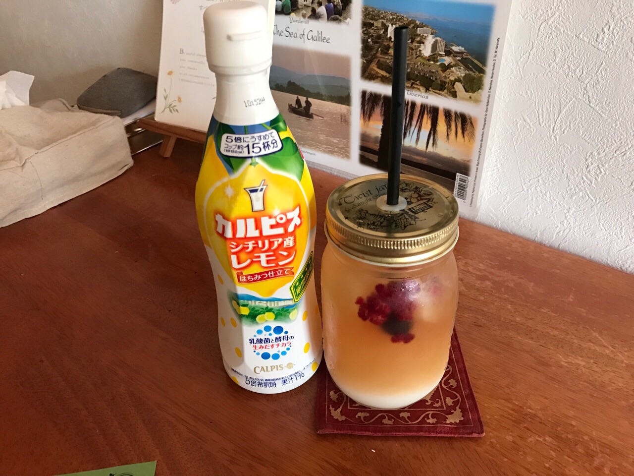 今日は暑い日でした。カルピスに紅茶に炭酸水を混ぜたドリンクで、すっきり。赤いのはラズベリーです。 柏 ハンナ