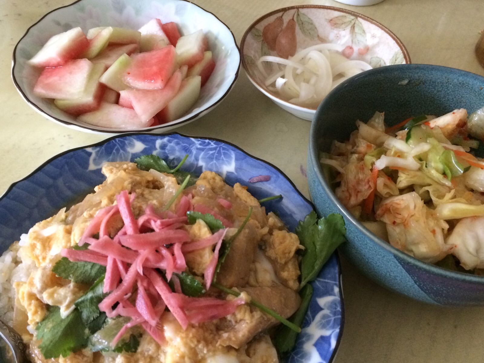 お昼ごはんです♪ 親子丼2です☆ スイカの漬物もあります☺︎ (^∇^) 鹿児島 izumi
