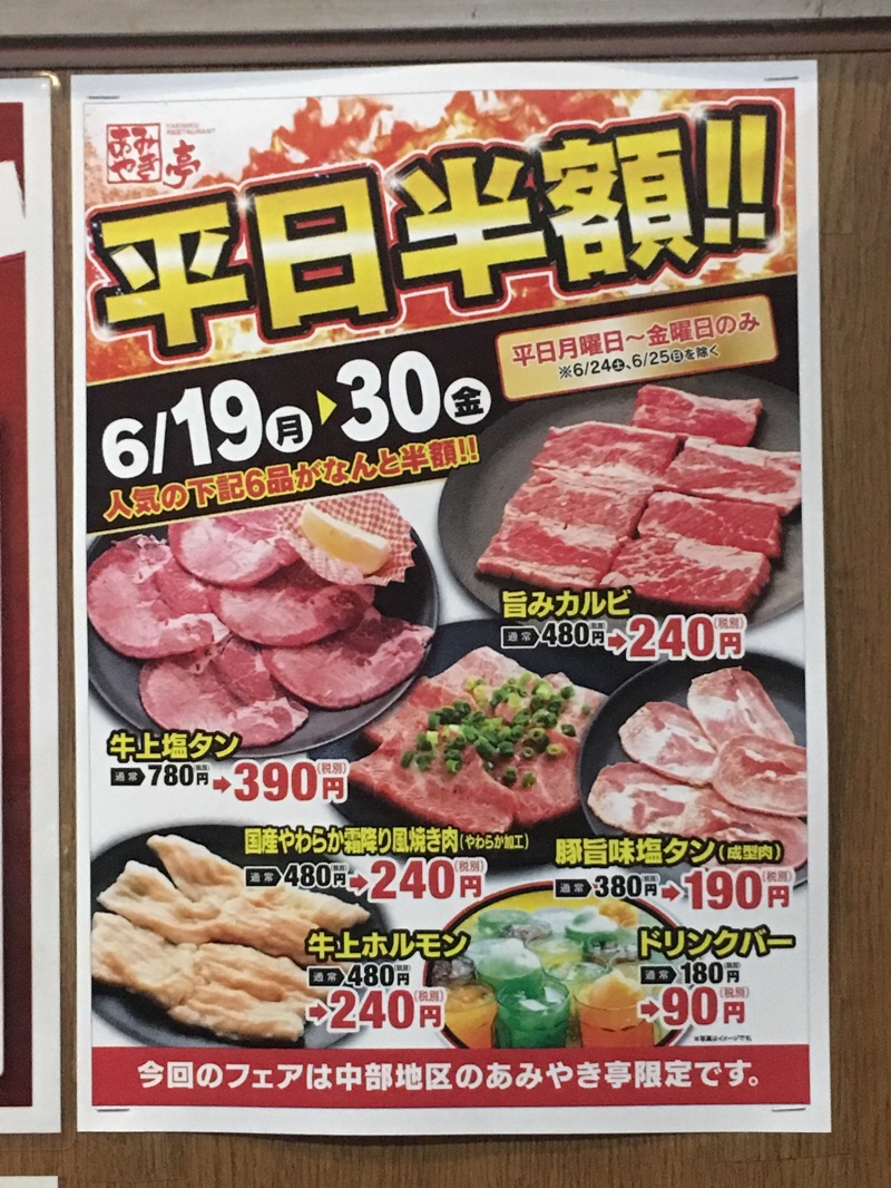 あみやき亭 平日6品半額美味しかった〜〜!白馬でも、お肉楽しみ! 四日市 カネザキ