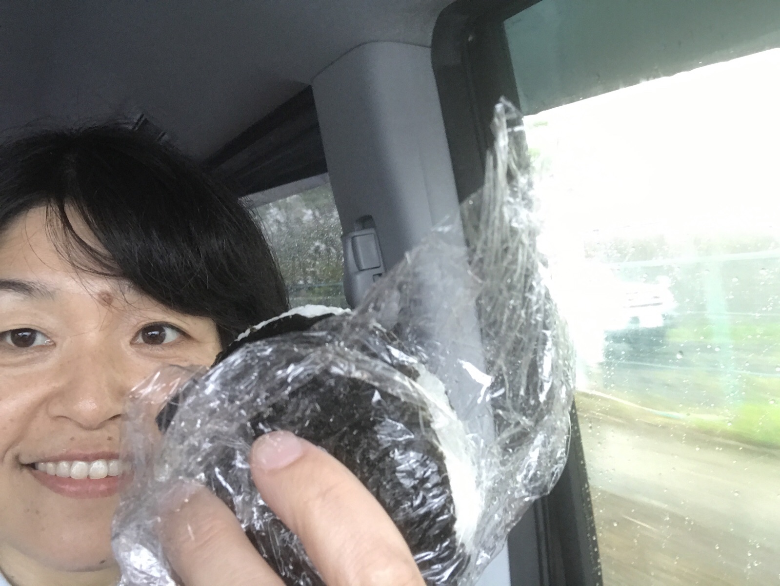 雨が降ってきたので今日は、車です。唐揚げオニギリ食べました。 東フィラデルフィヤ シオン