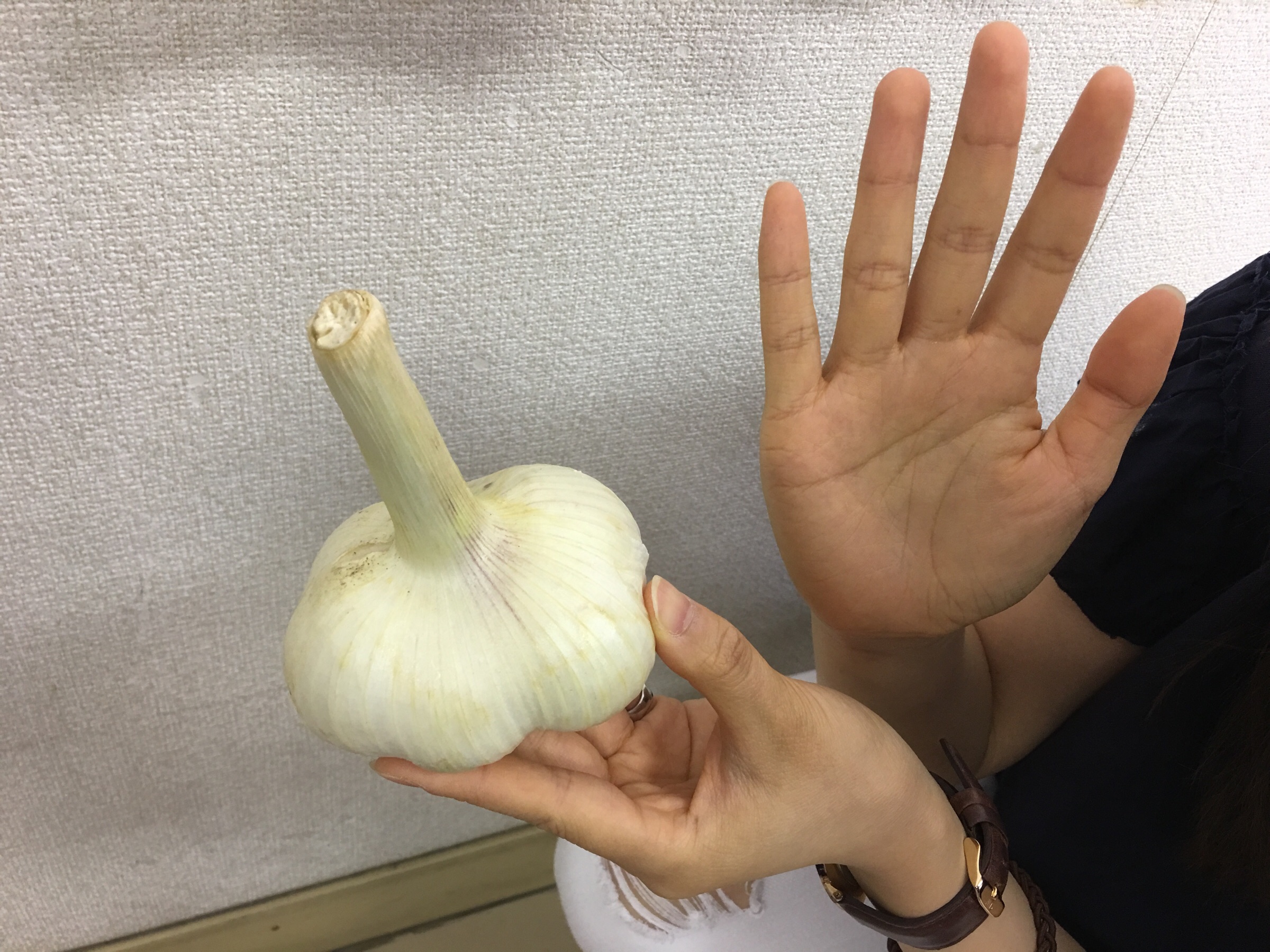 手作りのニンニクをいただきました〜!とても大きいです!会堂はニンニクのにおいがスゴイ〜(^.^) 四日市 Chikumi