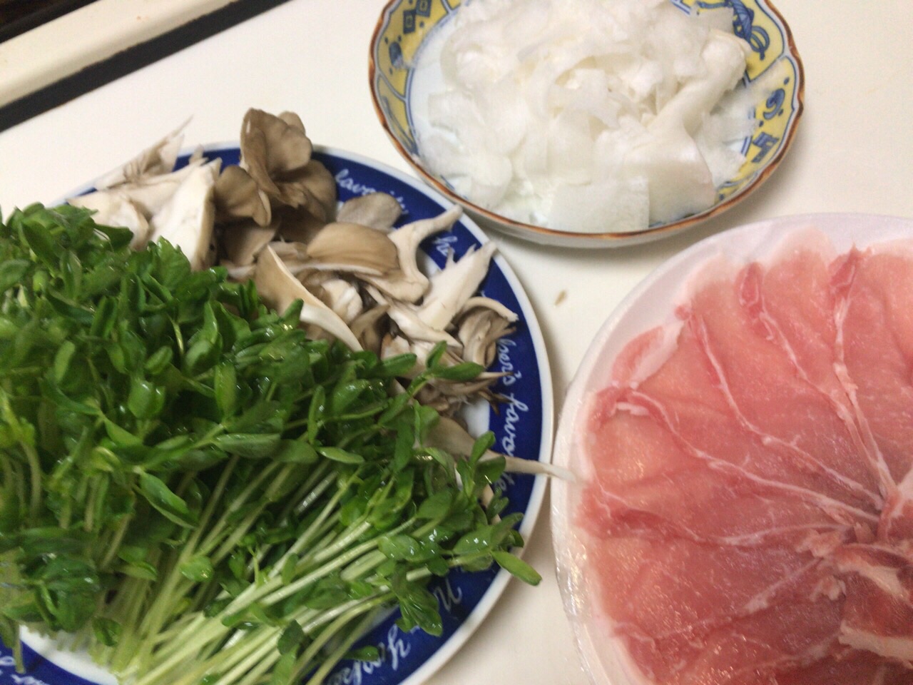 舞茸と同じお助け食材の豆苗! 何度かの収穫が終了し、新しい豆苗をスライスしたダイコンとともにしゃぶしゃぶに!肉もお安くなって…! amagai
