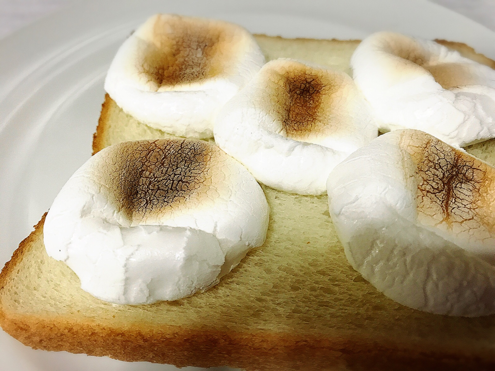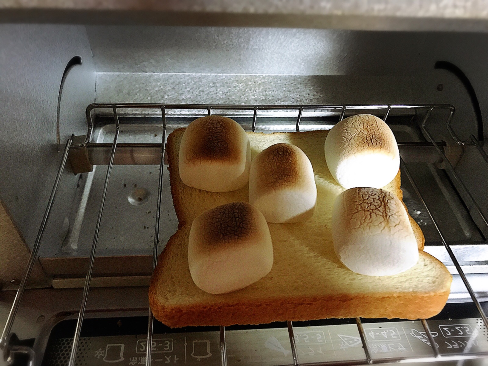 食パンにマシュマロをのせてトースターで焼くだけです(・ω・) スイーツのようです✧✧ 夕飯は作成中です⤴︎ やまなか