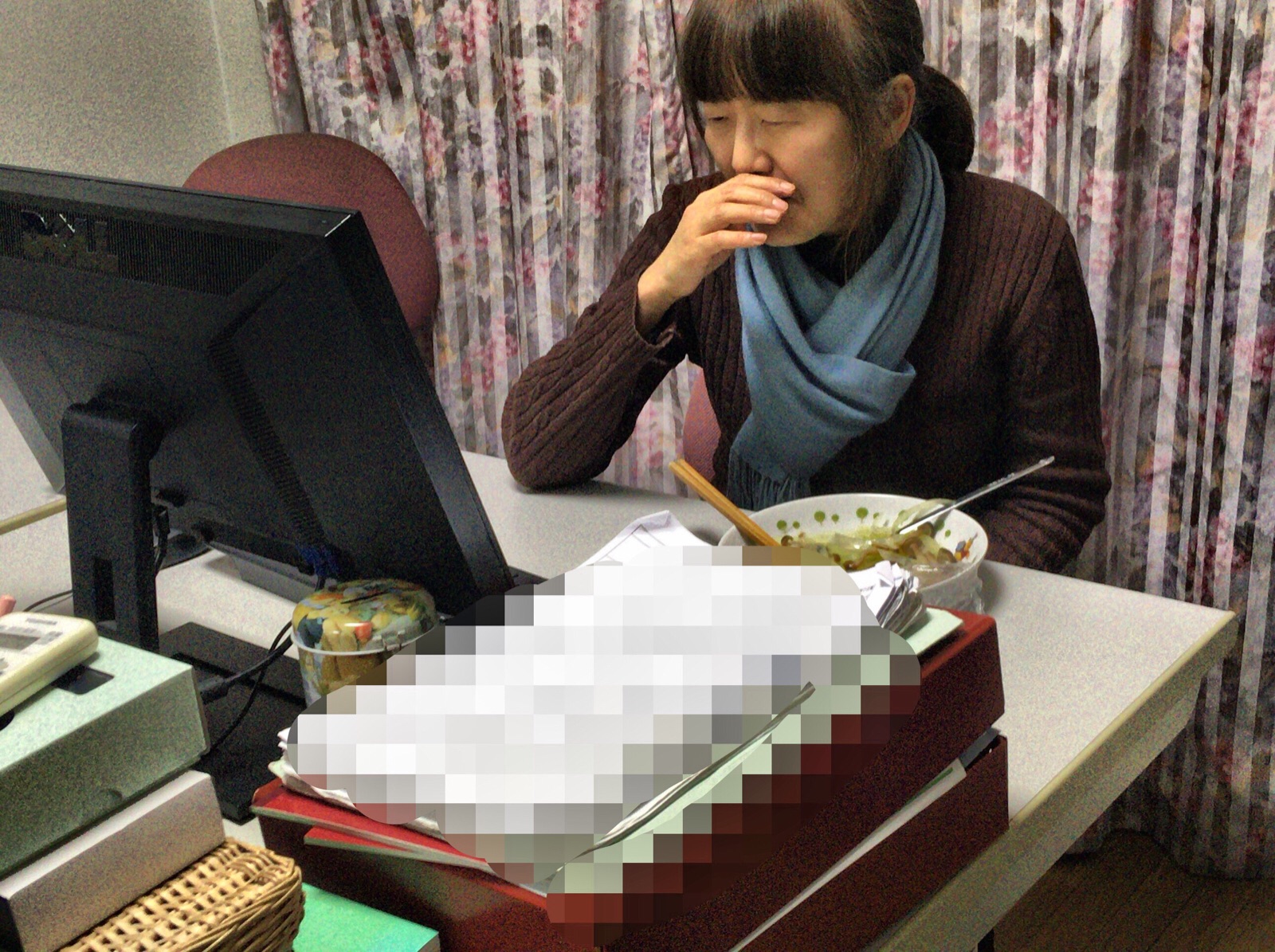 教会事務所に来たら、加藤さんがいらっしゃいました! なので、私は台所で朝食を。 Kayano