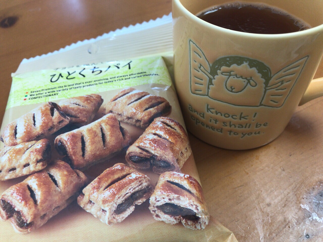 いただいたカップと… いただいたセブンのひとくちパイ! 甘さとしょっぱさと良いバランスで美味しい〜!amagai