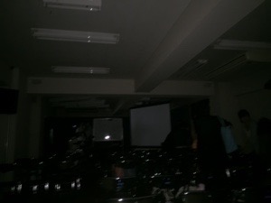 電気が消えた! あ、避難訓練はじまりました。