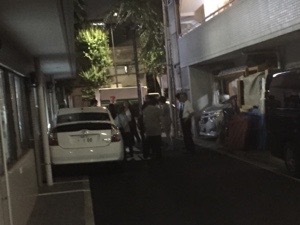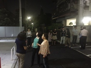三本松さんが仕事から到着! 避難訓練に加わります。