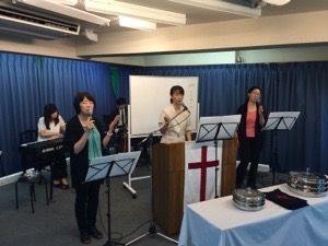 賛美の時。 エウカリの広田さん、ラスポーサの小野島さん、榊さんが導きます。