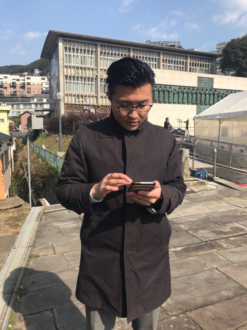 ラインをチェック中(?!)の設営班😃 神のしもべ長崎教会 覆面ブロガー🐾