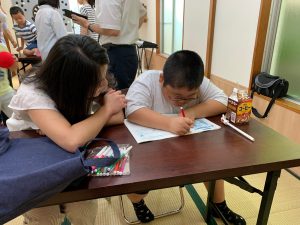 日曜日のこども礼拝あとのワークブックの写真を^ – ^