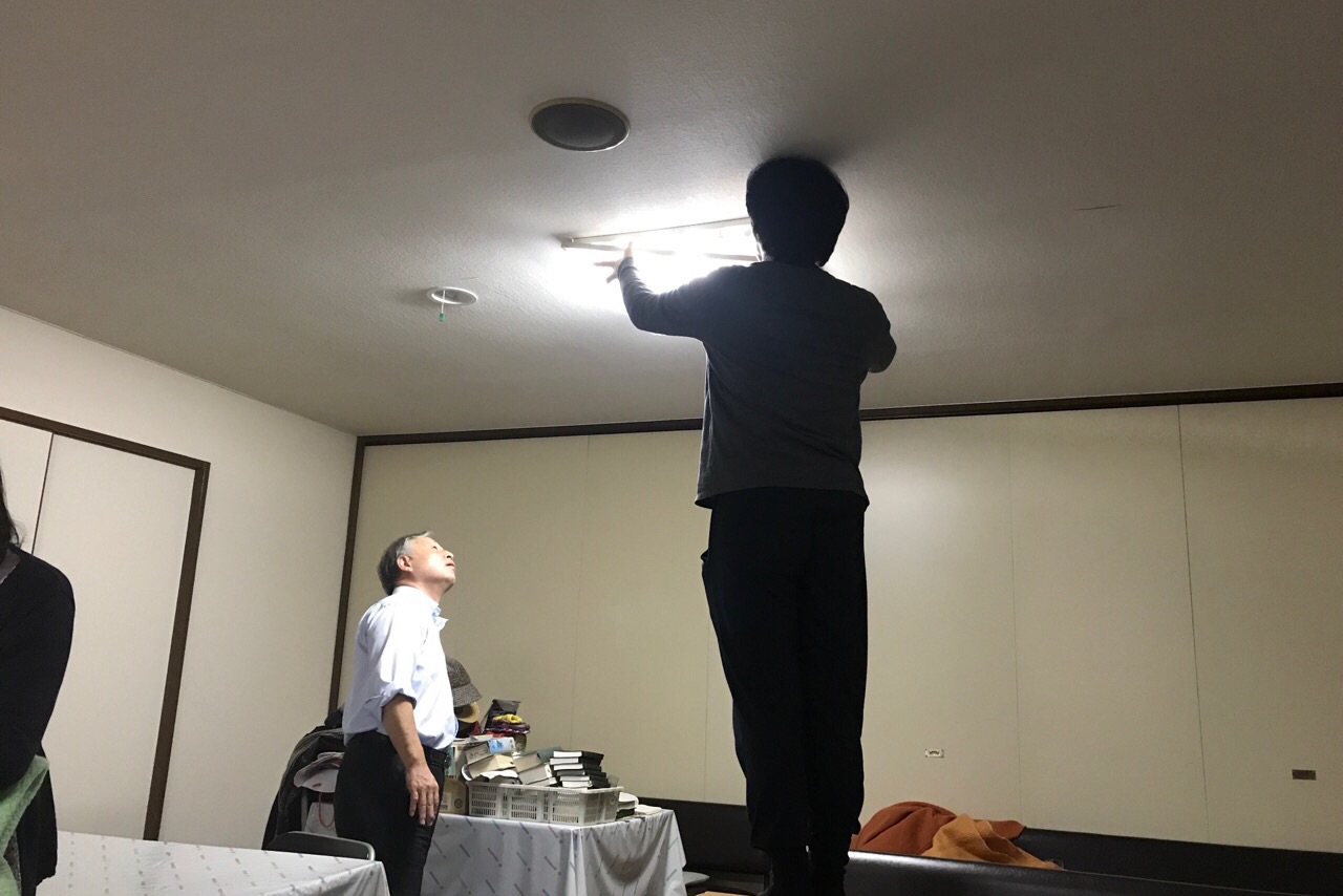蛍光灯がチカチカして、気になる。とうとうテモテさんが取り外しています。助かり〜 Kobayashi.H