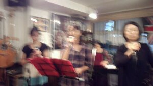 一般の2つのグループと私たちゴスペルグループが出演です。ゴスペルということで、たいへん喜ばれています。もうすぐ始まります。