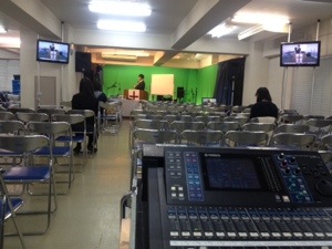 礼拝終了です! 出西牧師はこれからPAと映像の準備にかかります。 フジタ