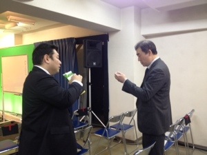 インターネット委員会の責任者の山田牧師と祈り担当の真境名牧師!インターネットの話し合い中? フジタ