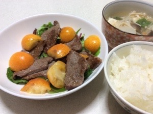 今日は、焼肉金柑ごはん にしてみました。 ちょっと、早いですが、 いただきま〜す!